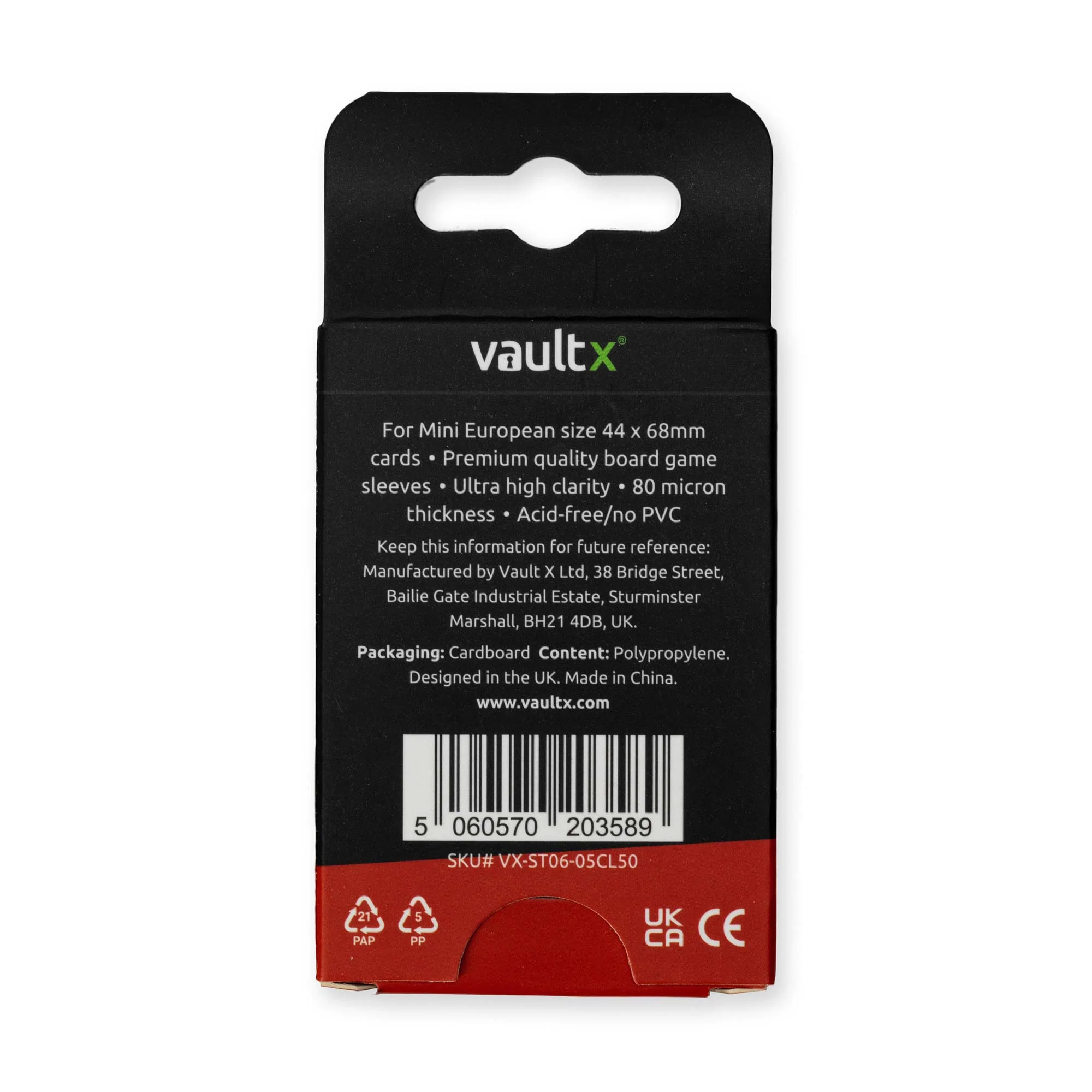 Keep your board games protected and extend the lifespan of your favourite titles with Vault X premium board game sleeves. Featuring excellent shuffle feel and premium 80 micron thickness, these 46 x 70mm sleeves are suitable for Mini European sized cards up to 44 x 68mm.